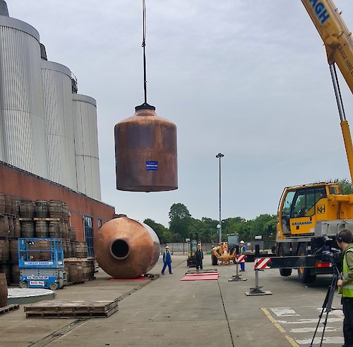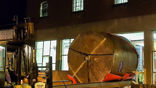 We removed the old stills,we then installed the 2 new stills putting them in through the window using a 20 tonne fork truck,with only 25mm clearance each side.